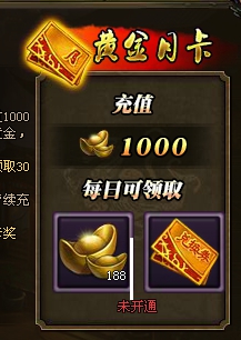 充值300黄金就可以开启白银月卡这样每日直接就可以领取100黄金,如果我们在游戏中单次充值达到1000黄金,那么我们就开启了黄金月卡,拥有黄金月卡我们每天就可以领取188黄金的奖励,这些都是月卡,大家可以计算一下我们一共可以领取多少奖励。但是大家需要注意一个小问题那就是如果我们在卡通月卡期间没有登录,那么我们就无法领取奖励,过后无法获得补偿,所以这点一定要注意。我们在游戏中开通月卡之后,每日领取的奖励可以持续领取30天,领取方式为在每日任务中领取,大家不要找不到位置。其实黄金月卡的另外一个优势就是我们除了188黄金的获取还有兑换卷,兑换劵在使用过程当中会随机获得军械、宝物、拜帖等物品中的一种。